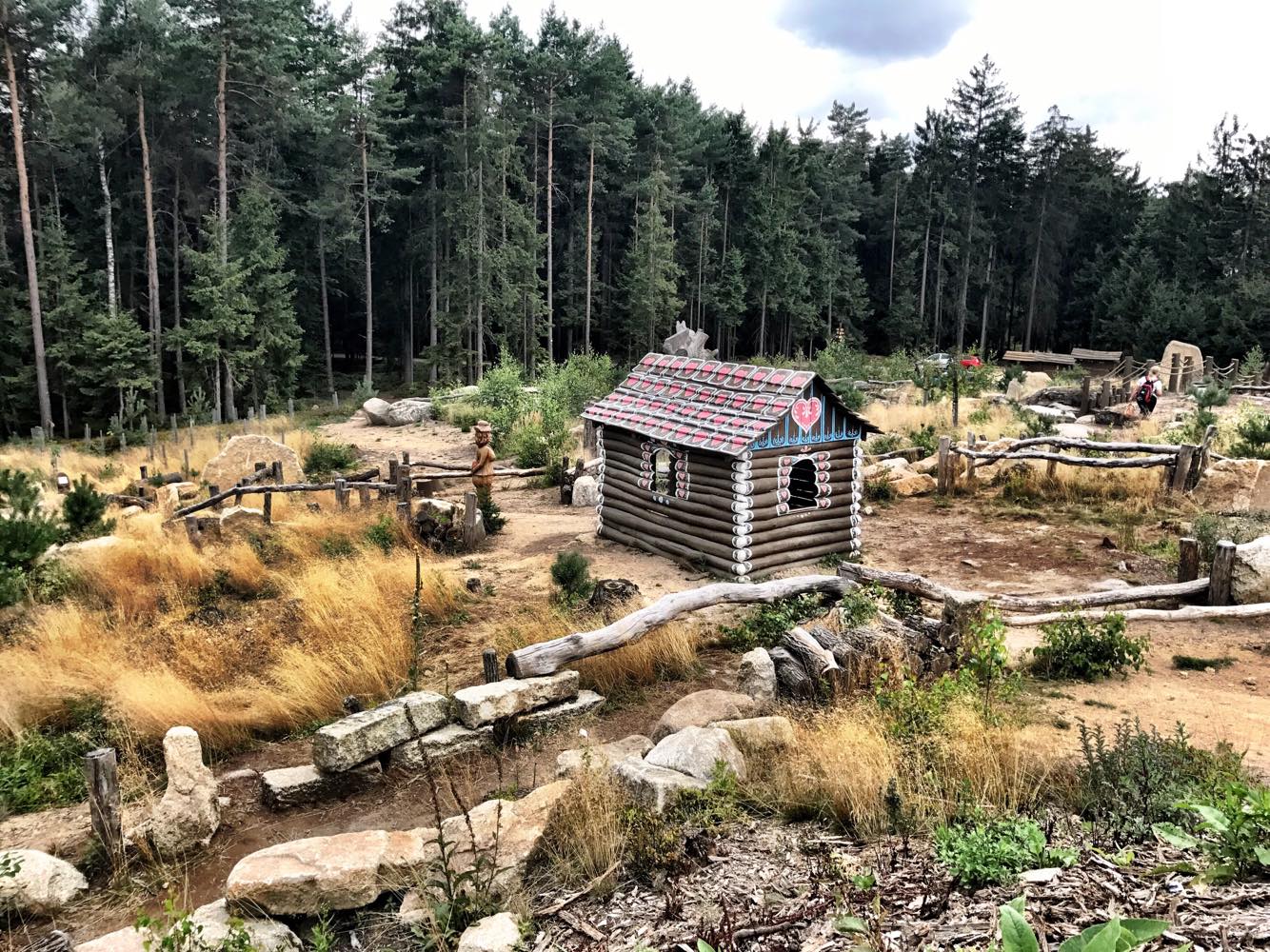 Když jsme dorazili na místo, nestačila jsem žasnout. Pro mě to zatím byla první navštívená rozhledna, kde mysleli tolik i na děti. Pod rozhlednou je rozsáhlý lesopark a najdete toho tam opravdu hodně – lanovku, trampolínu, teepee s lezeckou stěnou, klouzačky, houpačky, pískoviště vč. hraček, perníkovou chaloupku s bludištěm, podzemní chodby, prolejzačky, bosochodník. Jako bonus lesy a čerstvý vzduch všude kolem!<3