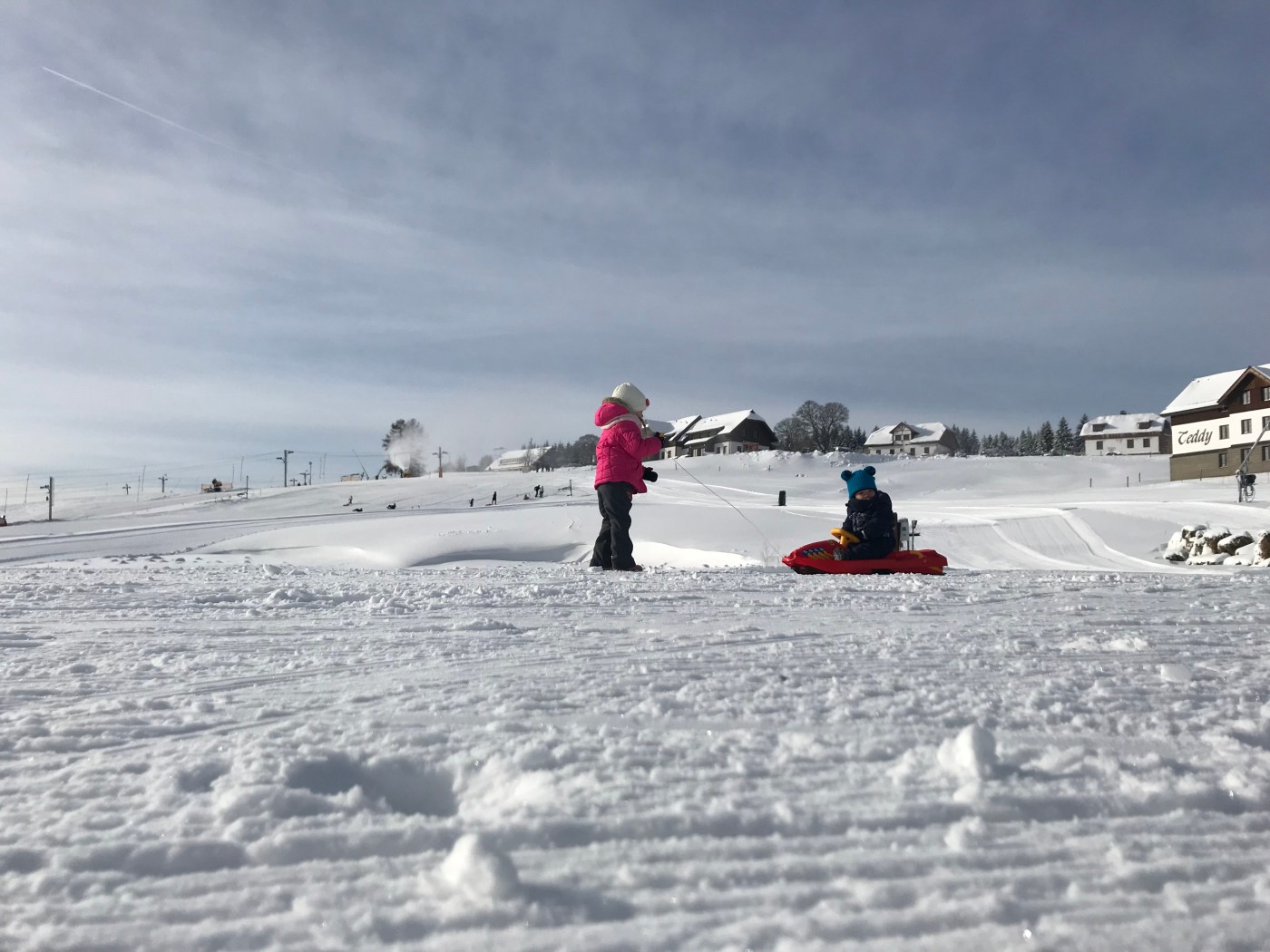 Další důvod, proč je Kvilda skvělá pro děti, je upravovaná šáňkařská/bobovací dráha. Letos jsme si to fakt užívali (vloni junior bobovat vůbec nechtěl). Dráha je veřejně přístupná a zdarma. Pokud chcete děti (i sebe) dostatečně unavit, tohle je ten správný recept 🙂