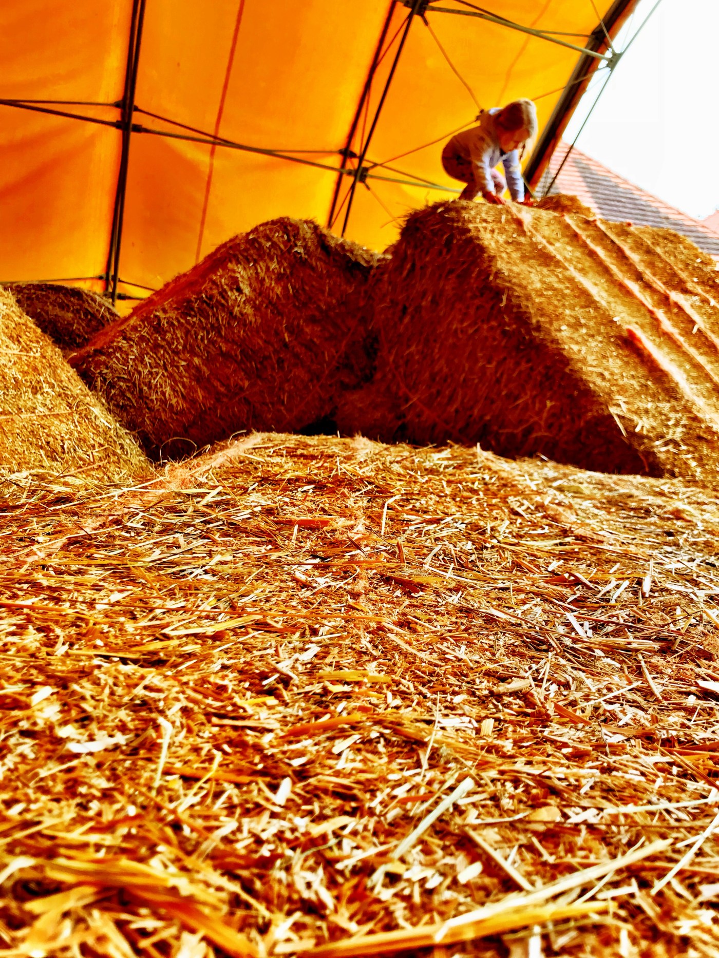 Naše tříleťačka si skákání, prolézání a klouzání na balících slámy skvěle užila. Jedno doporučení – určitě dětem zastrkejte všechno, co zastrkat jde (trička do tepláků apod.) protože ta sláma jinak pěkně „kouše“ 🙂