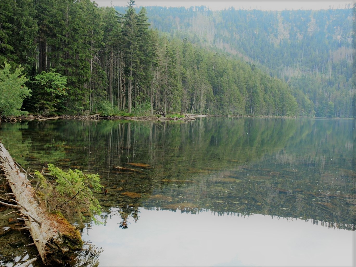 Rozhodně doporučuji vzít dětem svačiny s sebou. Nahoře u jezera jsou dřevěné lavičky, kde jsme chvíli poseděli, posvačili a kochali se výhledem na jezero. Ta šumavská příroda mě vždycky dokonale nabije 🙂