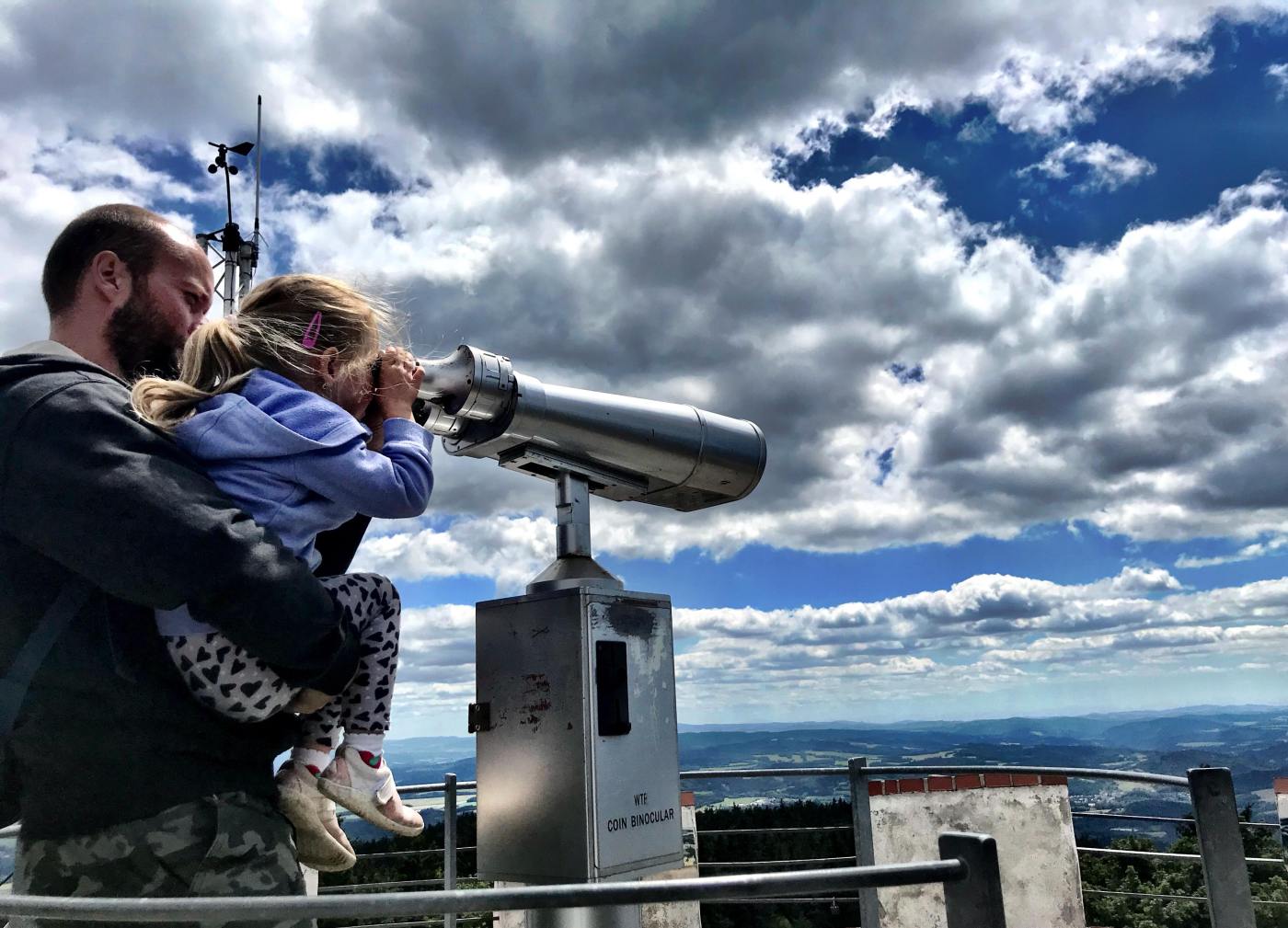 Plzeň tedy necháváme na jindy, sedáme zpět do auta a vyrážíme na Kleť. Taťka miluje výhledy, děti budou mít zážitek z lanovky a maminka nemusí o víkendu vařit, wohoo 😀 Spokojenost na všech stranách