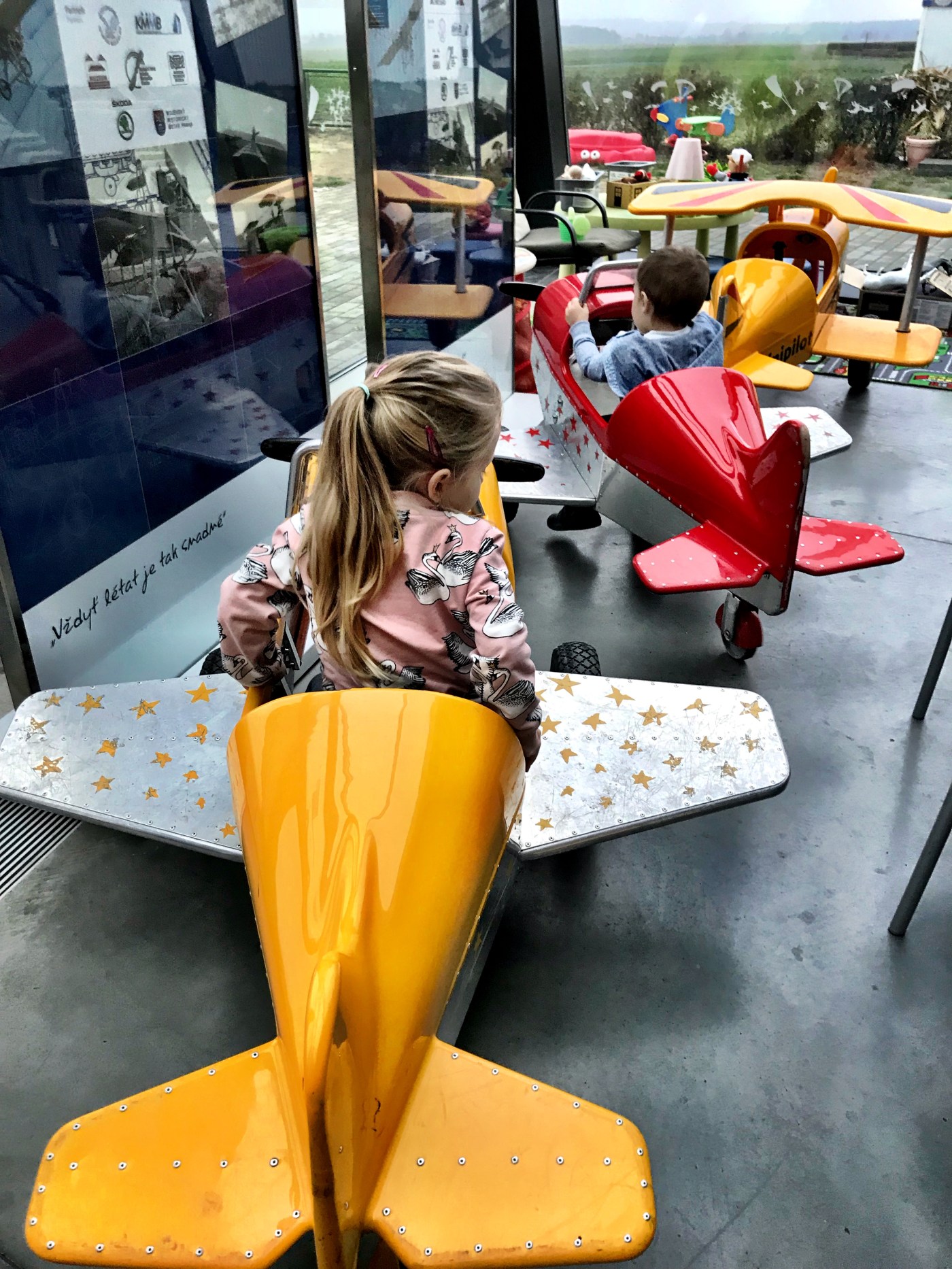 Součástí muzea je i nová stylová kavárna, kde si po prohlídce můžete zajít na kafčo nebo něco dobrého, zatímco si děti pohrají. Mají tady skvělá mini letadýlka, ze kterých byly naše děti úplně paf.