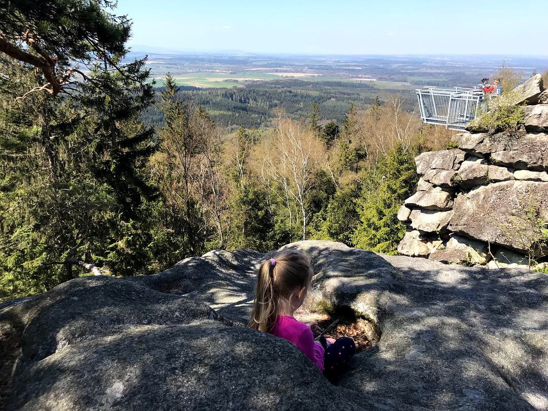 Nezapomeňte vzít s sebou něco dobrého a udělejte si s dětmi na vyhlídce třeba piknik. Mandelstein je kouzelné místo a my jsme na vrcholu strávili dost času, relaxovali a kochali se výhledy. Mandelsteinu dominuje ocelová vyhlídka, která je nad skalami a pokud se bojíte výšek, rozhodně se nedívejte dolů 🙂