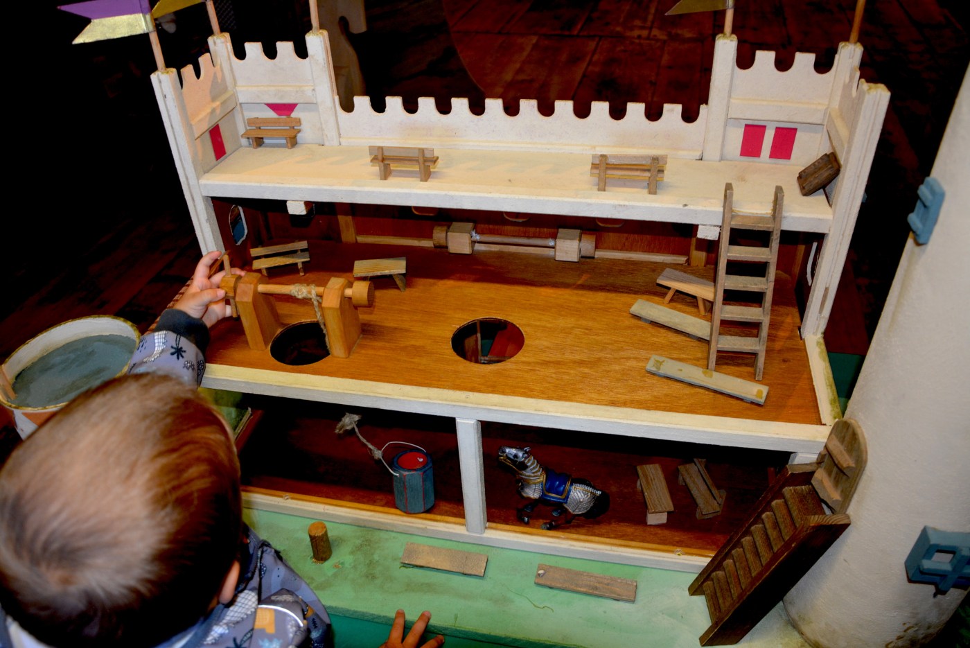 Junior byl nadšený z výstavy autíček a z dřevěného hradu plného vojáků.