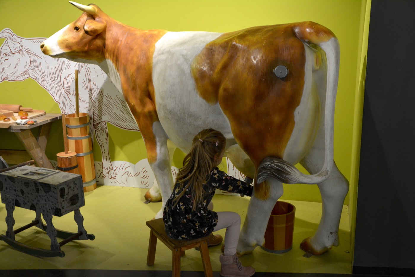 Největším trhákem této výstavy bylo dojení krávy. Aneb co se v mládí naučís… 😀