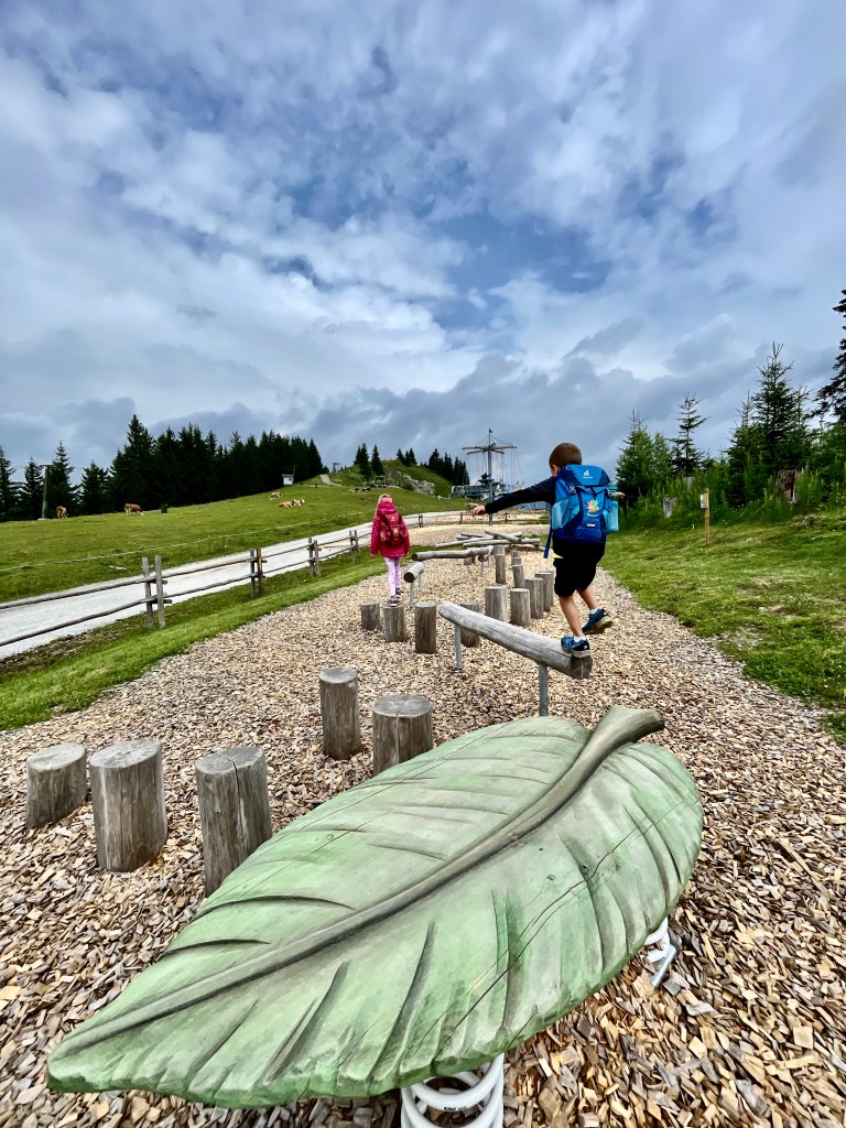 Počasí se nám ke konci týdne už zkazilo, tak jsme ještě v průvodci S dětmi v báglu vybrali kratší výlet do Fusbachu na stezku, kde děti plnily úkoly a poté dostaly u obsluhy lanovky odměnu (výlet č. 77 v průvodci). Na této stezce je vyžití pro děti, lanovka, hřiště, prolézačky…
