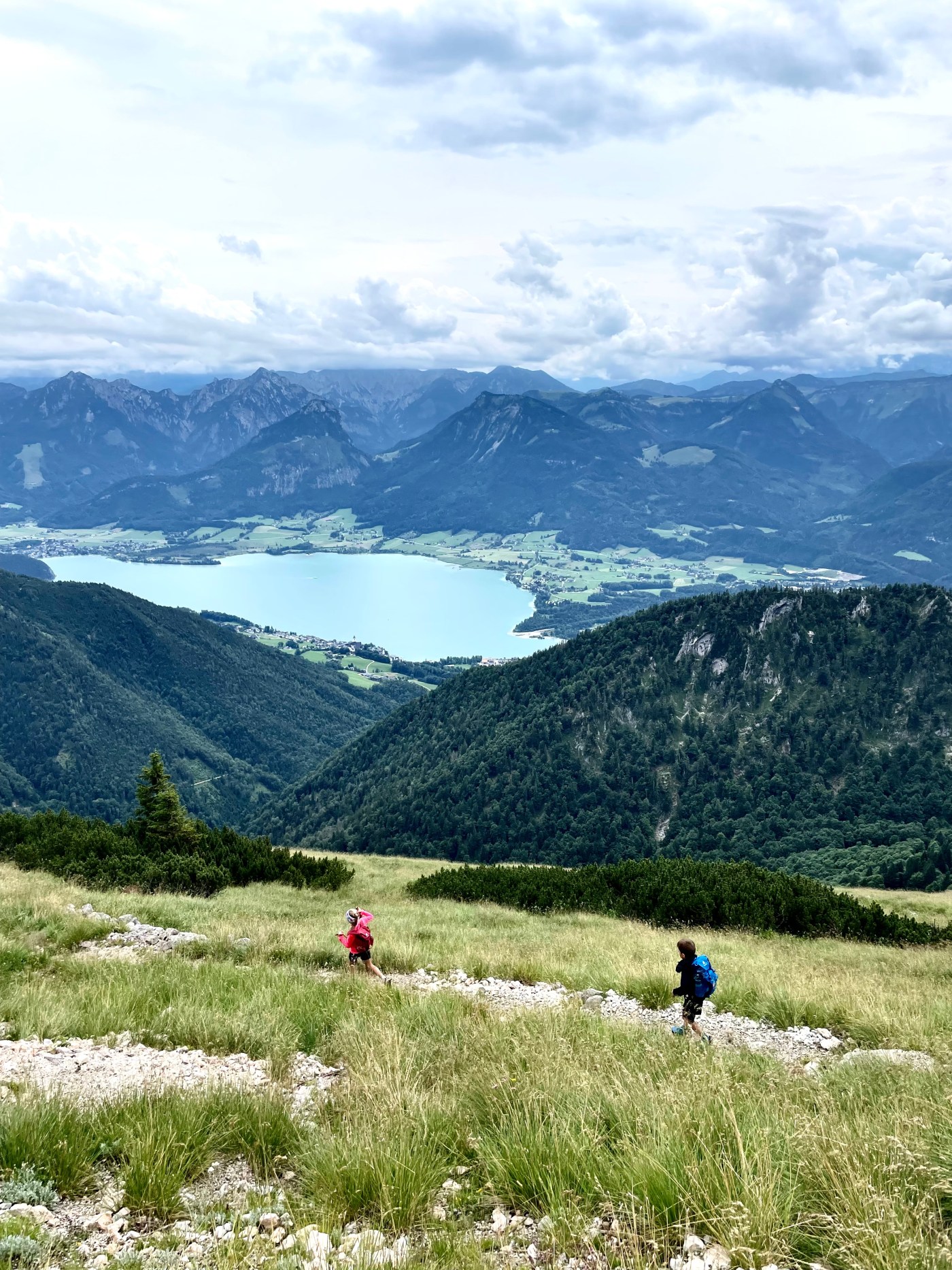 Další varianta s většími dětmi je túra kolem vrcholu, která je dlouhá 5,5 km. Nejprve budete klesat k jezeru Mönichsee a poté budete stoupat zpět k horní stanici lanovky. Trasa není vhodná pro malé děti, protože vás budou čekat dva zajištěné úseky (není potřebova ferratového vybavení) a se staršími zdatnými dětmi to bez problémů zvládnete.