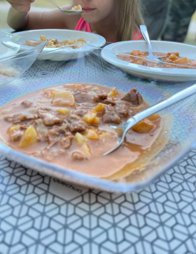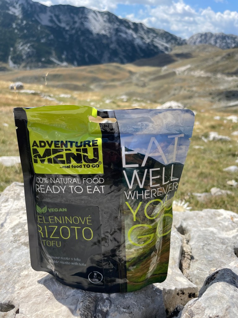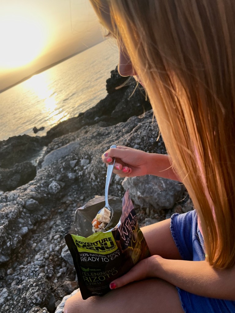 Kempovací tip č.2: Adventure menu! Znáte? Poctivě uvařená jídla, 100% přírodní, bez konzervantů. Otevřeš, ohřeješ a máš za pár minut uvařené plnohodnotné jídlo. Hostinu si tak můžeš udělat kdekoliv, třeba jako my uprostřed albánských hor nebo na chorvatském pobřeží 🙂