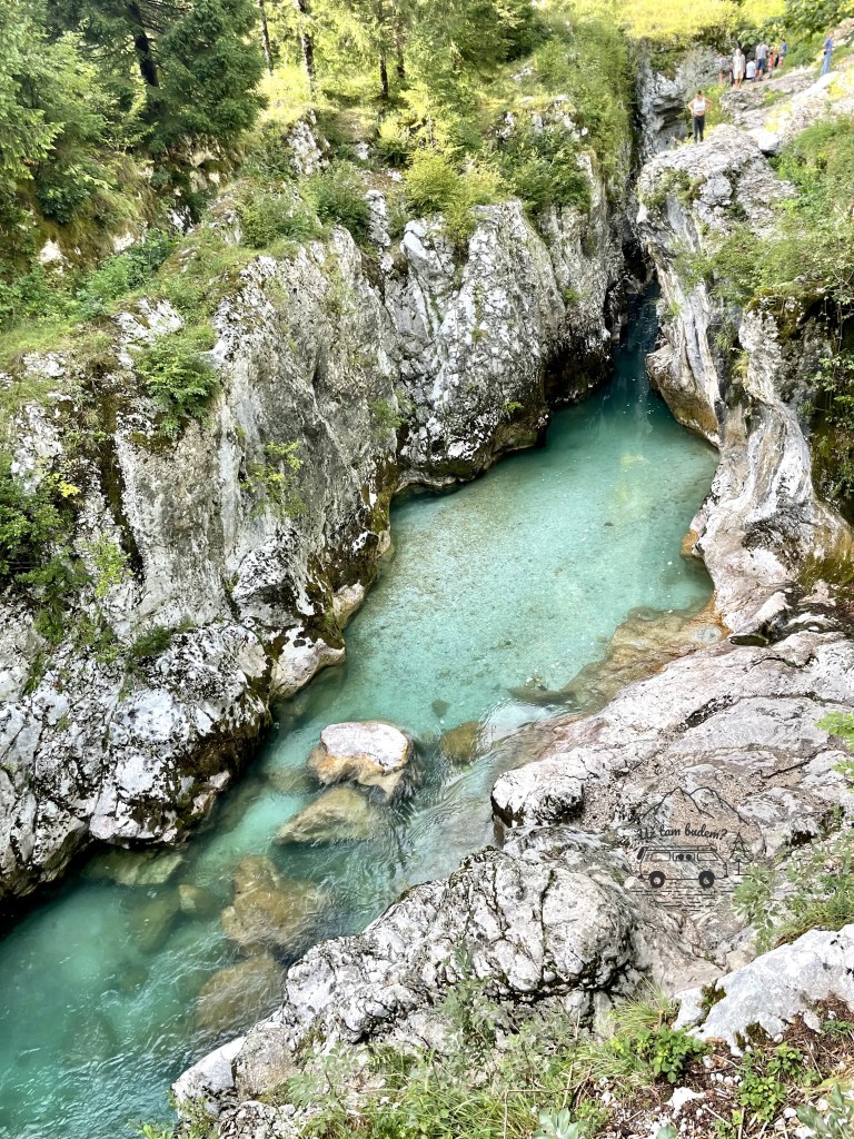 My jsme kempovali v kempu Klin, odkud se můžete na stezku Soča River Trail napojit a podél řeky dojít pěšky až na Veliká Korita. Doporučuji pevnou obuv. Kdo je otužilý, ten by neměl minout toto místo.