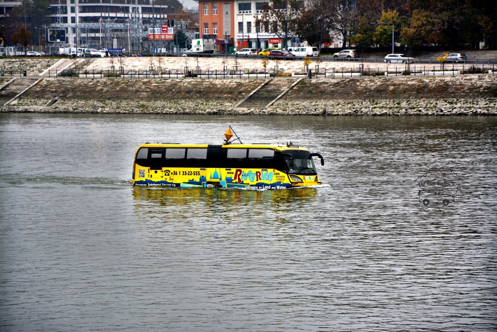 Tak tohle byl teda vážně zážitek! Autobus, který přímo ze silnice sjede rovnou do Dunaje, kde se z něj stane výletní loď. Lístky si můžete koupit tady, nicméně já když viděla, jak je nakloněný na jednu stranu, bohatě mi stačilo sledovat tohle sci-fi z povzdálí 😀 Tuhle nezapomenutelnou podívanou uvidíte z Margaretina ostrova poblíž mini ZOO (my jsme tu byli v čase cca 10:30h) nebo přímo na místě činu zde.