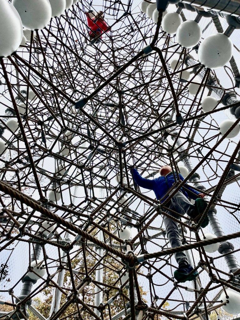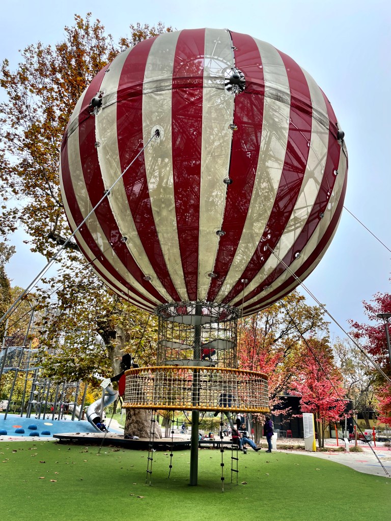 Városligeti Nagyjátszótér. To nejhezčí a největší hřiště, na kterém jsme zatím s dětmi byli. Tohle místo rozhodně nesmíte vynechat! Hřišti dominuje horkovzdušný balón a je tu vše, na co si jen vzpomenete – lanový park, vodní park, prolézačky, lanovka, houpačky, lezecká stěna, ping-pong a hřiště na všechny možné sporty. A kavárna? Ta je hned u hřiště 🙂 Dokonalý!