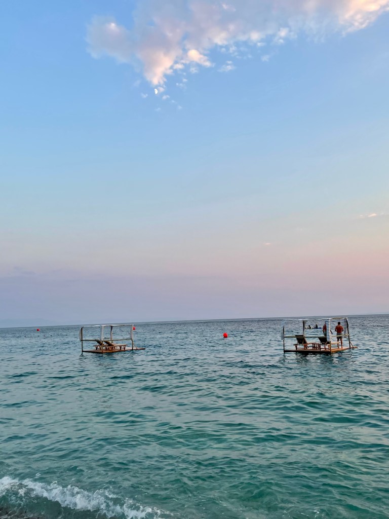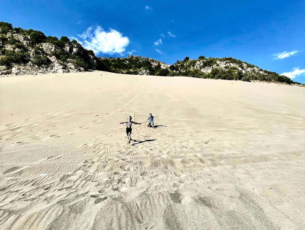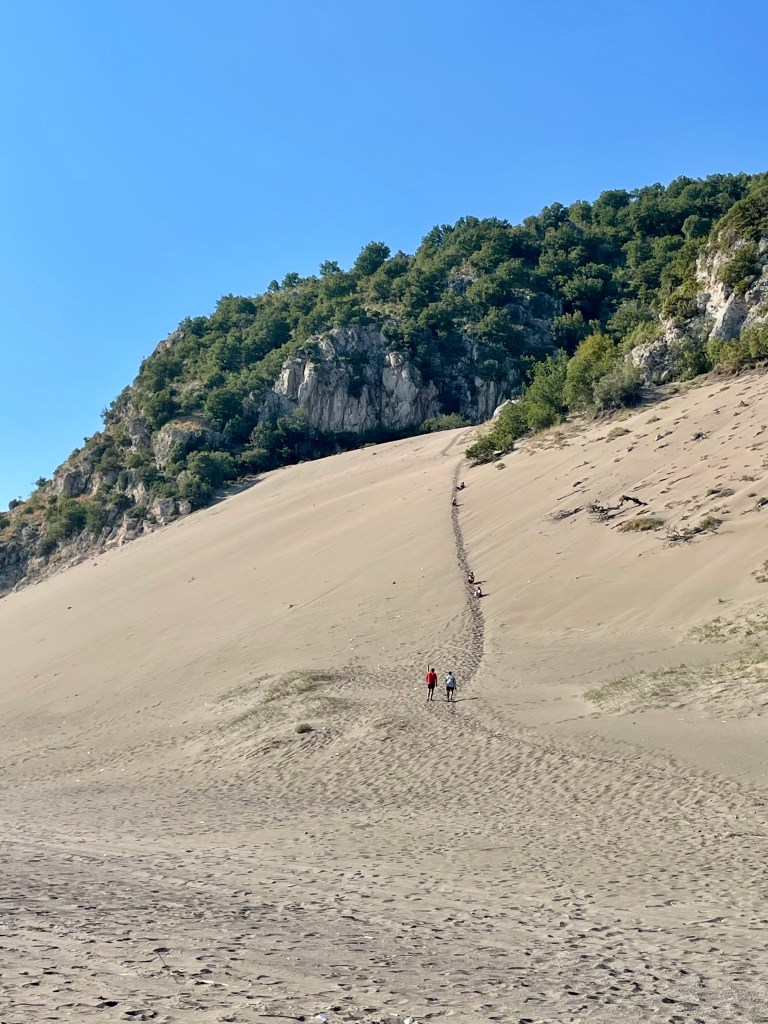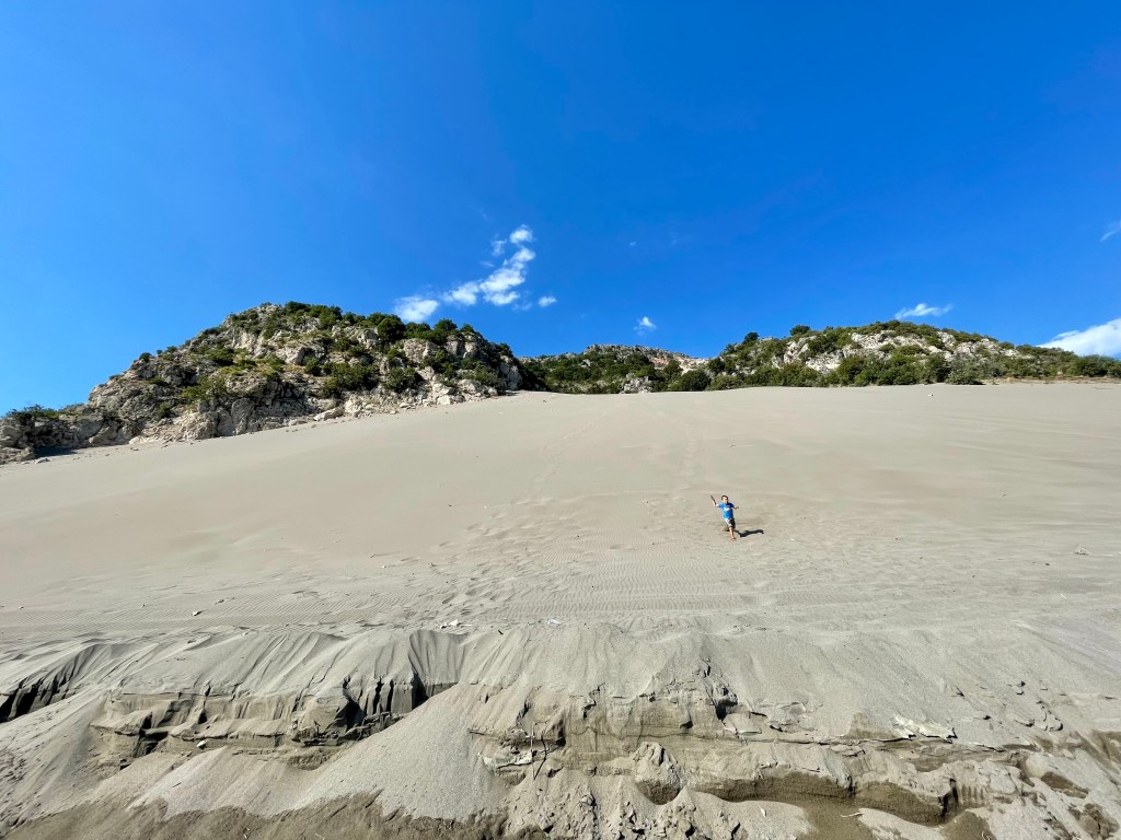 Zvërnec a jeho pláže bylo místo, které ocenily hlavně naše děti. U písečných pláží totiž bylo vody jen po kolena, bez vln, pro rodiny s menšími dětmi ideální. Na jednu noc jsme zakotvili v Eco Camping Valona, který si v r. 2022 založil dva místní albánci Toni & Bess. Kemp je přímo v borovicovém lese mezi lagunou a mořem, a jak už název napovídá, snaží se být co nejvíc eco-friendly. Každovečerní barbecue je skvělá možnost jak poznat nové lidi. V kempu mají výběh i koně, kde se můžou děti svézt a odvézt si skvělý zážitek.