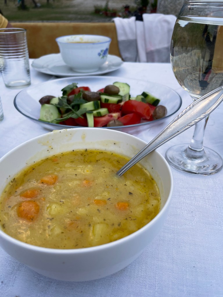 My jsme zakempili na zahradě u jedné balkánské babičky, která nám přiblížila život místních zase o trochu víc. Sprcha a sociály u ní doma, večeře přímo na plotýnce přímo od babičky spolu s dvěma Španěly, kteří byli u ní ubytovaní – to je přesně to, co mám na cestování ráda. A to jídlo bylo dokonalý! Ubytování a “kemp” najdete jako Camping Guesthouse Rupa.